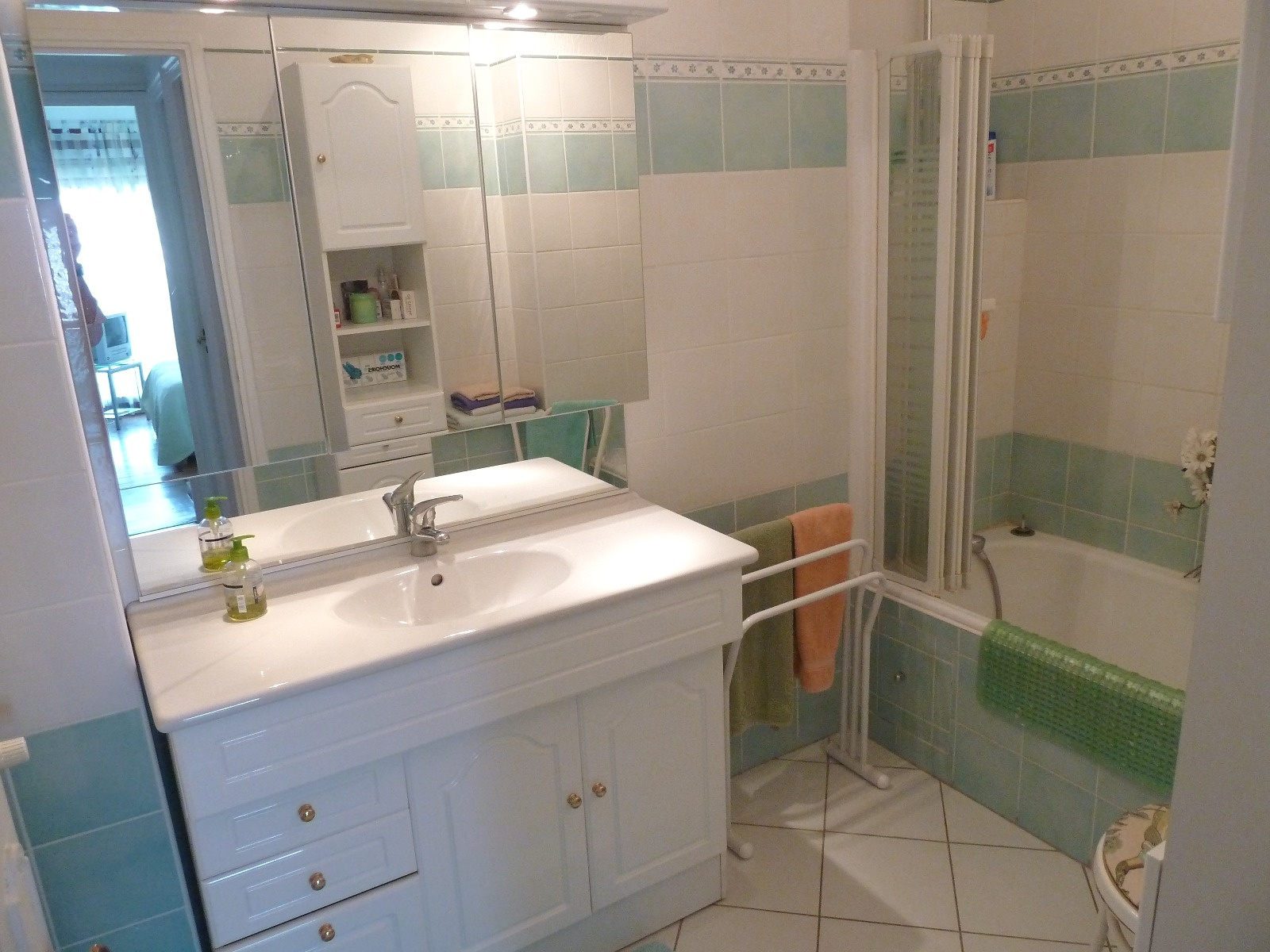 Spacieux 2 pièces de 60 m² avec une terrasse sur le toit de 55 m², belle entrée séjour avec terrasse, cuisine séparée équipée, chambre avec dressing, salle de bains et WC indépendant, climatisation, parc et parking.