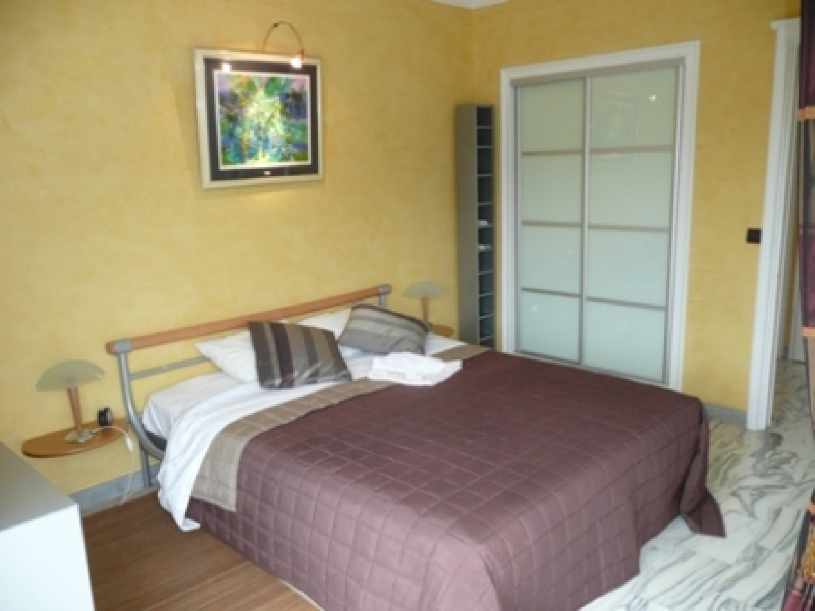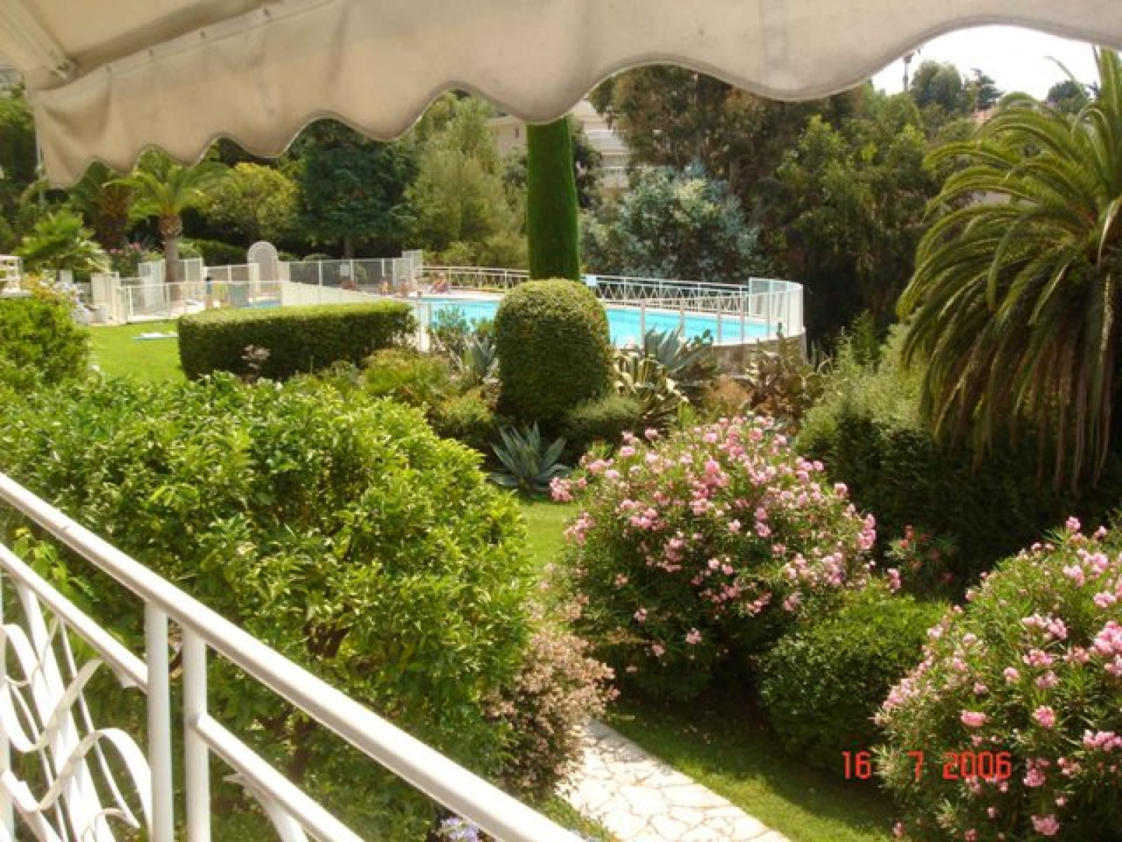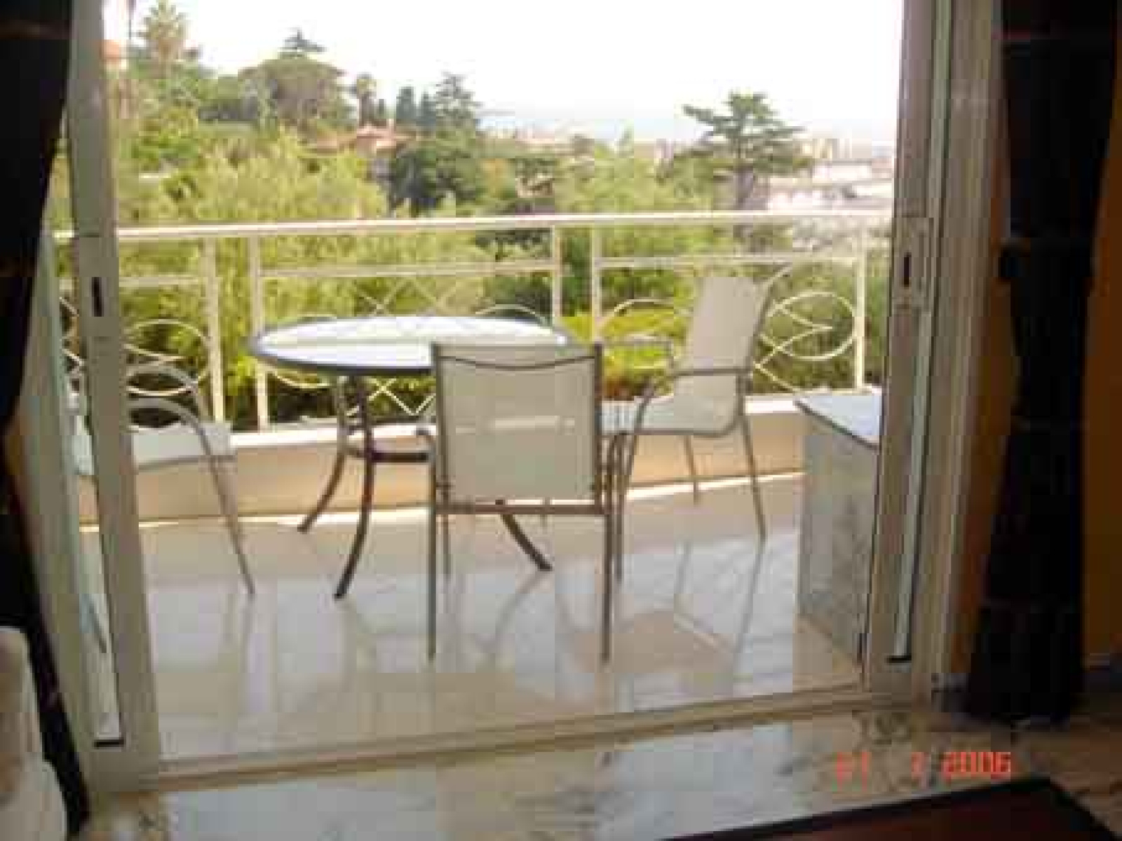 Cannes (06400)Au calme absolu, superbe 2 pièces de 55 m² jouissant d'une terrasse plein sud de 10 m² avec une vue mer, dans une résidence de très bon standing avec gardien, piscine, parking, climatisation. Prestations luxueuses. Pour 4 personnes maximum.