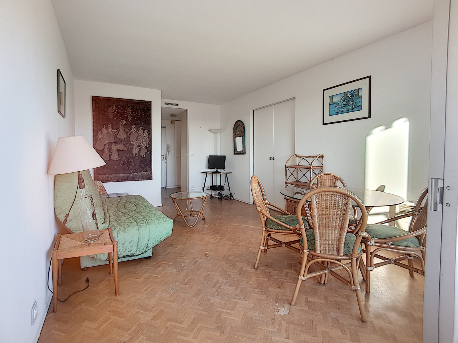 Cannes (06400)Situé dans un havere de paix dans une résidence entourée de verdure d'un parc privé, avec un parking privatif sécurisé. Profité d'un appartemen tout équipé, avec une chambre, cuisine équipée, balcon prolongée d'une vue mer, 1 salle de bain, WC séparé, un salon avec TV et WIFI. A seulement 14 mn à pied de la Croisette et des plages.