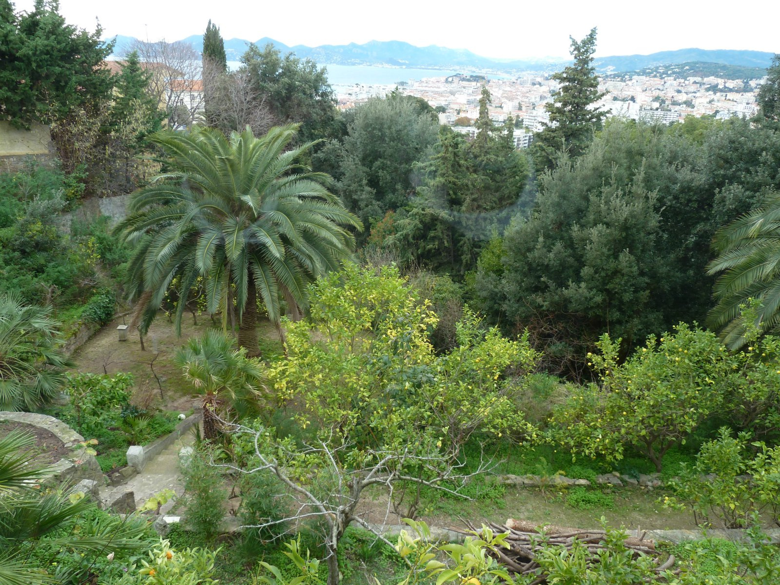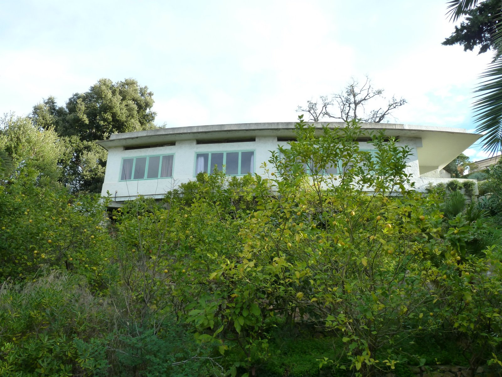 Maison Californienne de plein pied de 80 m² se composant de 3 chambres, jouissant d'une magnifique vue mer sur toute la baie de Cannes, terrain en restanque de 2500 m², parkings pour 3 voitures. Au calme absolu.