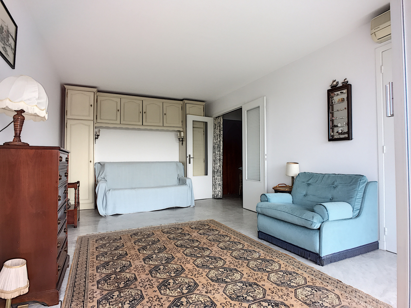 EXCLUSIVITE Grand studio de 30,72 m² L.C.profitant d'une terrasse de 7 m² pleine sud prolongée d'une vue mer, au calme, parking privatif, parc, résidence de standing. A deux pas de la rue d'Antibes à pied.