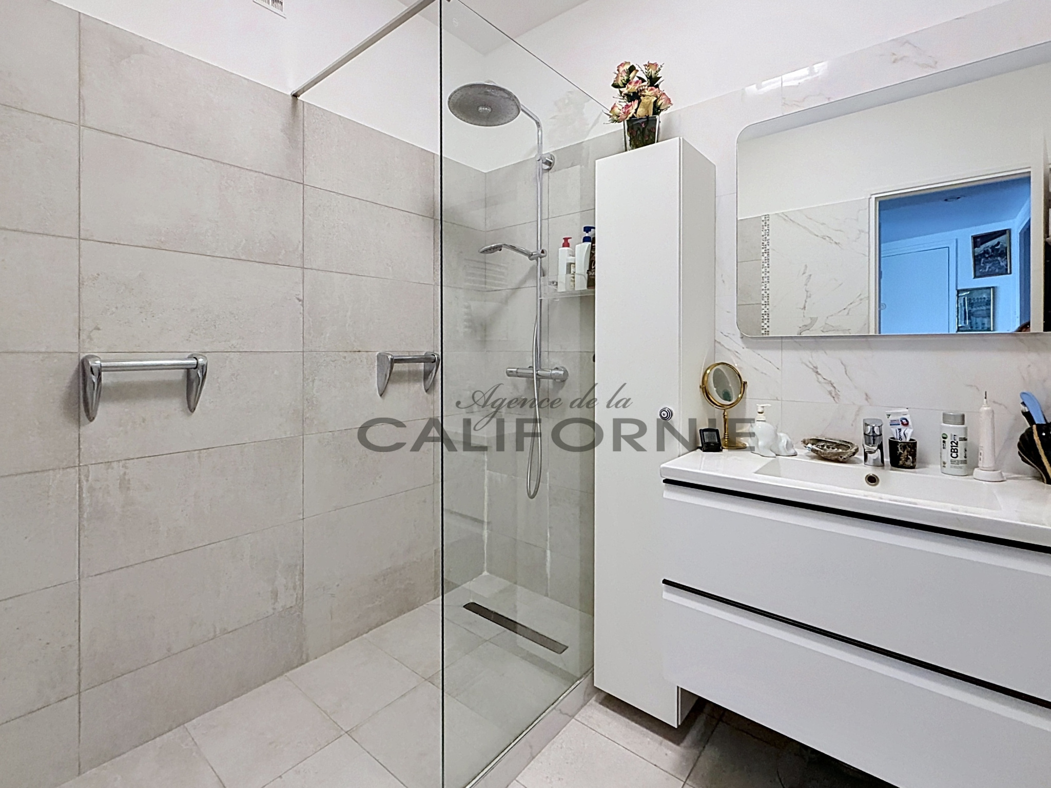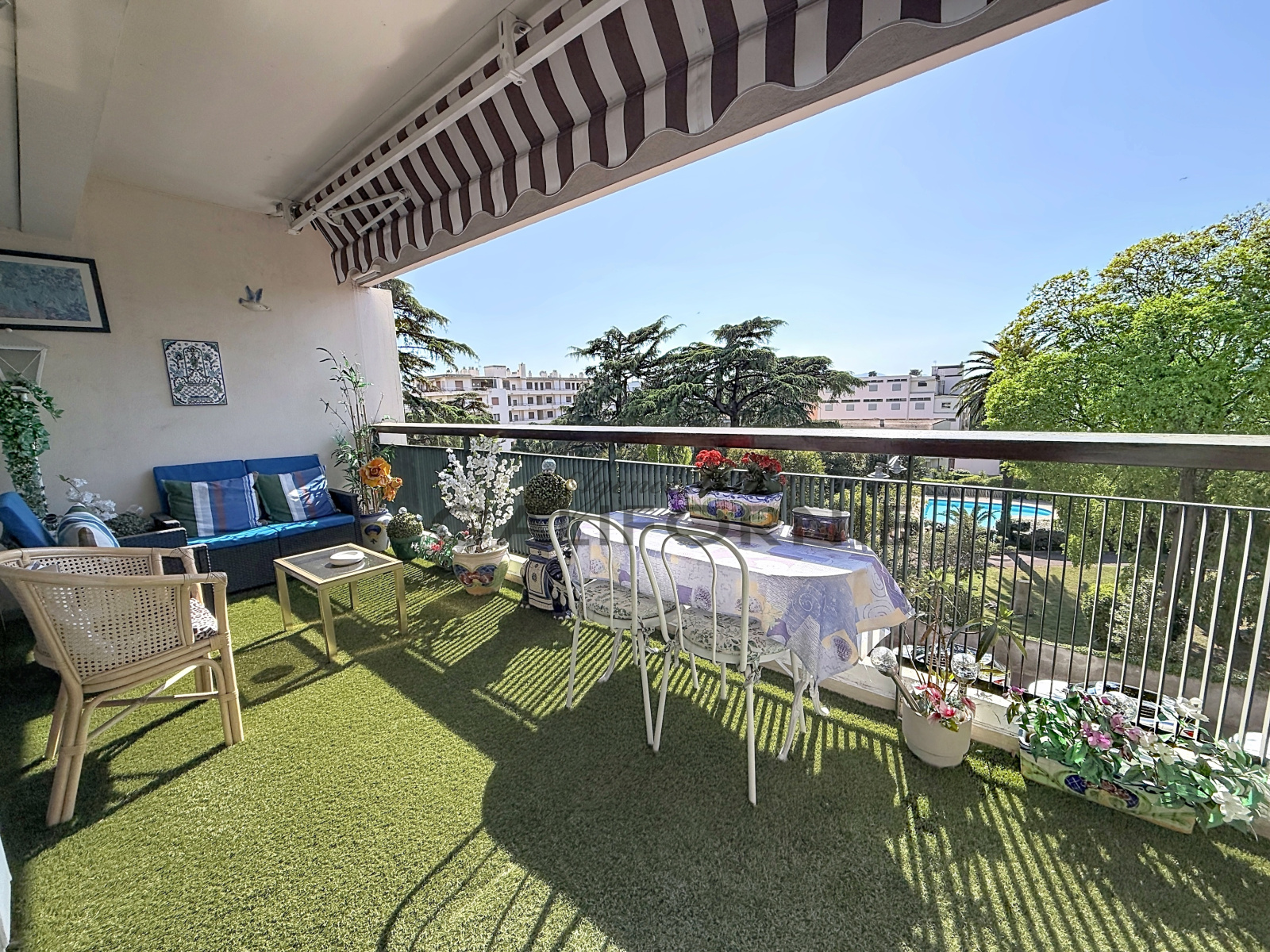 Cannes (06400)Secteur recherché de Montfleury, grand 2 pièces traversant de 70,48 m²L.C. en étage élevé profitant d'une terrasse de 13 m² plein ouest et d'une loggia avec espace buanderie. Il se compose d'une entrée, un double séjour, une chambre, un dressing, une cuisine indépendente équipée, une salle de douche, un WC invité et 2 caves. Garage en sous-sol. Résidence profitant d'un parc et parking collectif securisé.