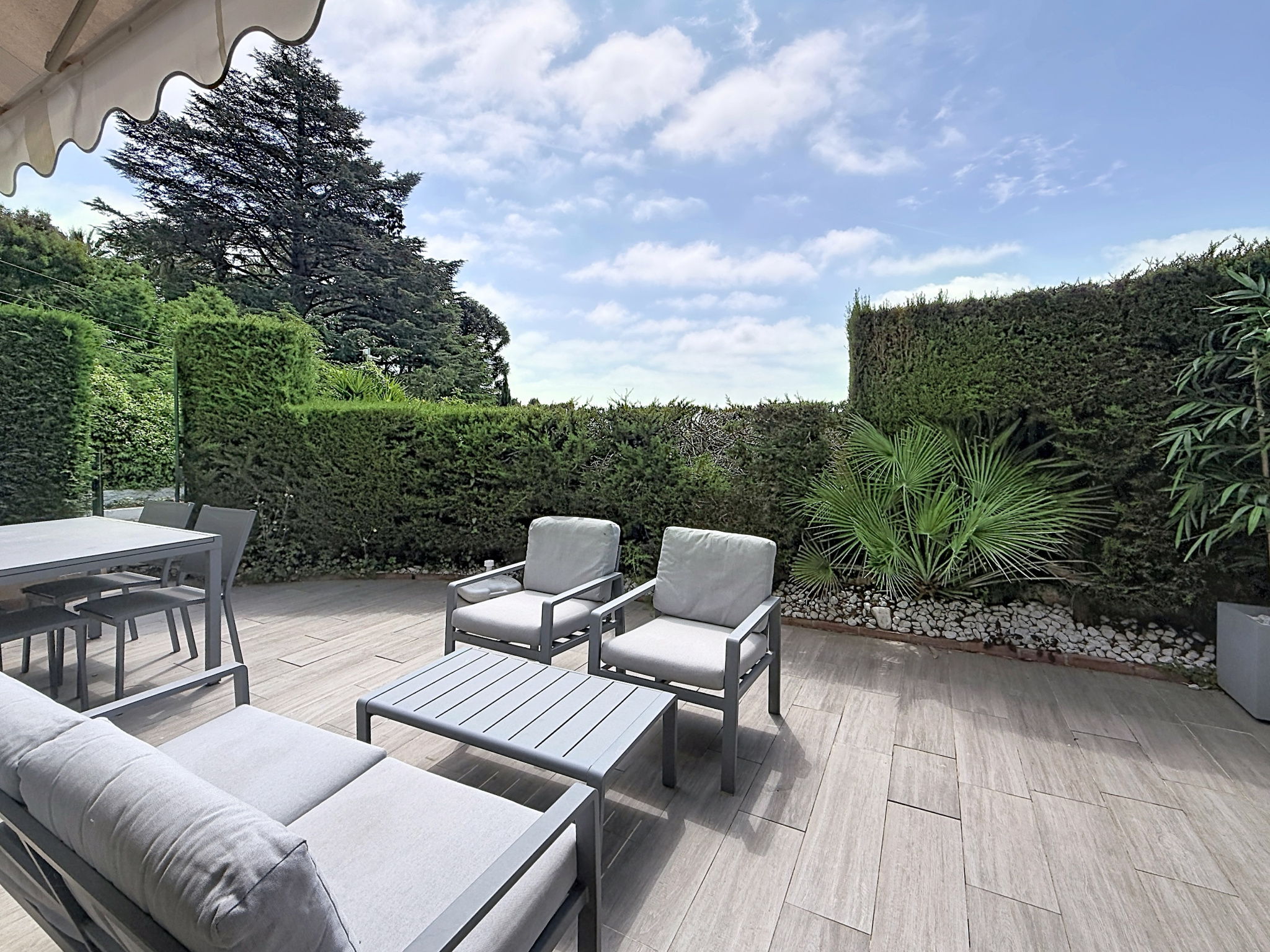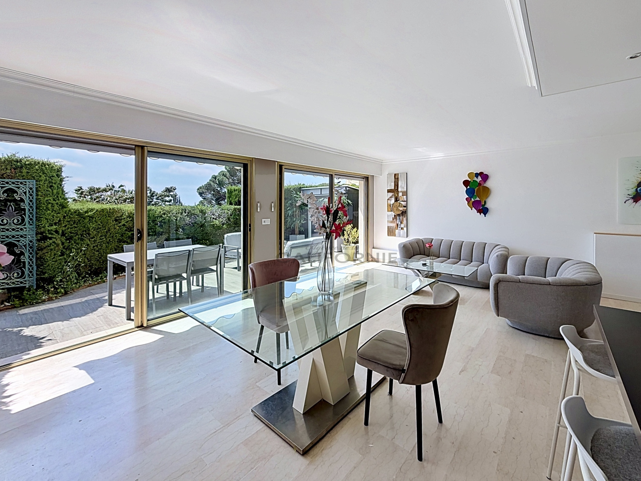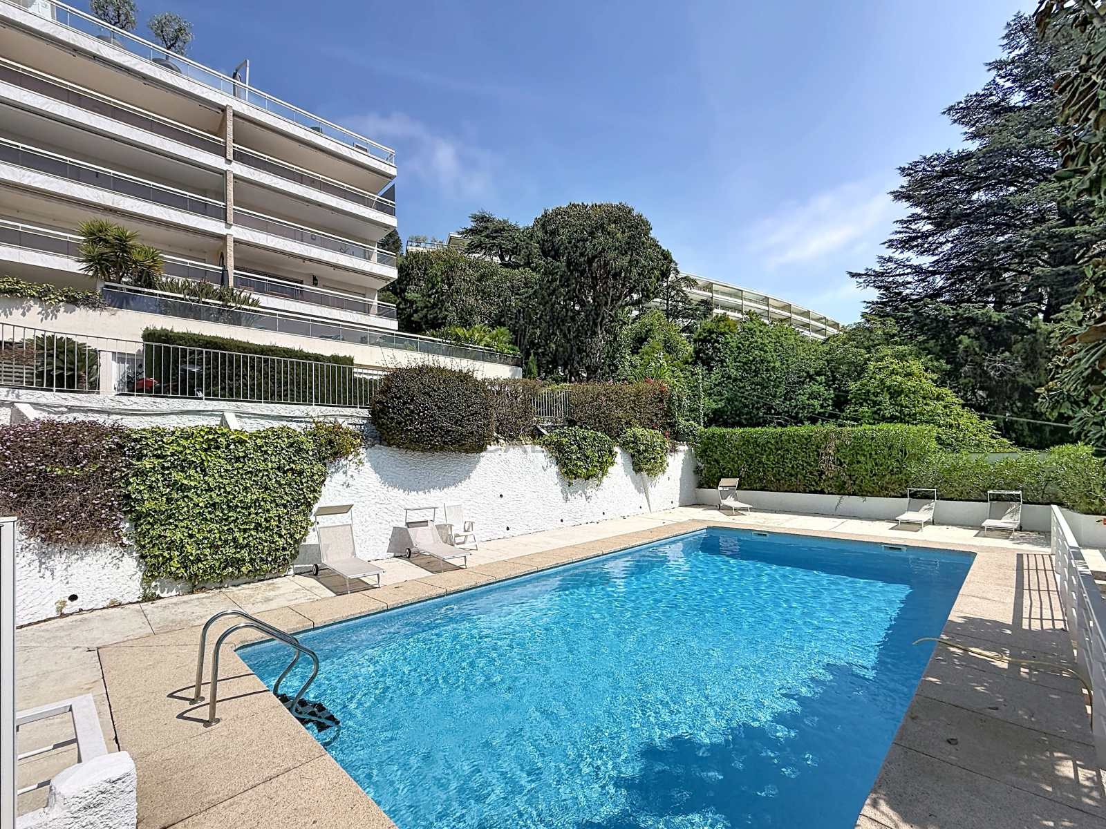 Cannes (06400)Spacieux 3 pièces de 89,37 m² L.C en rez de jardin, profitant d'une terrasse de 40 m² prolongée d'une vue mer. Situé dans une petite résidence de standing, sécurisée au calme. Une Piscine, un parking et une cave complète de ce bien.