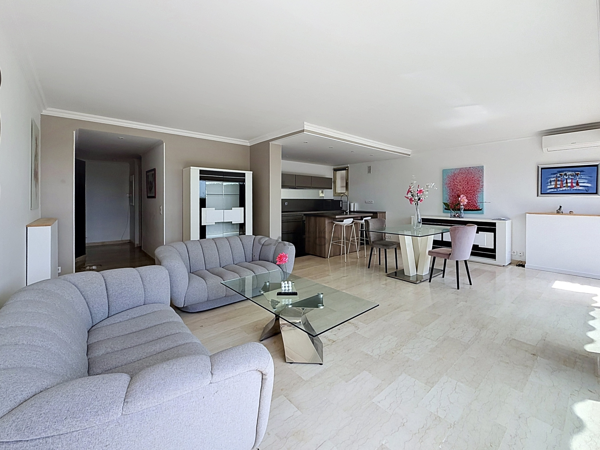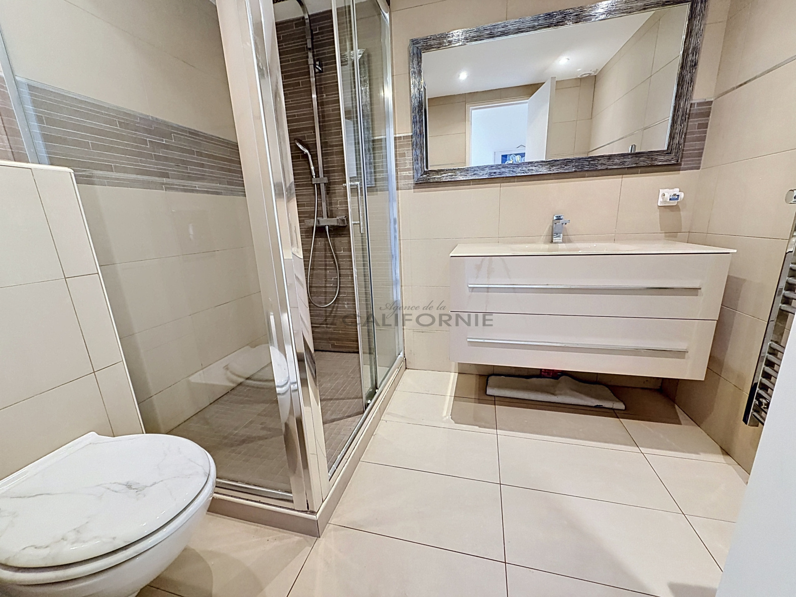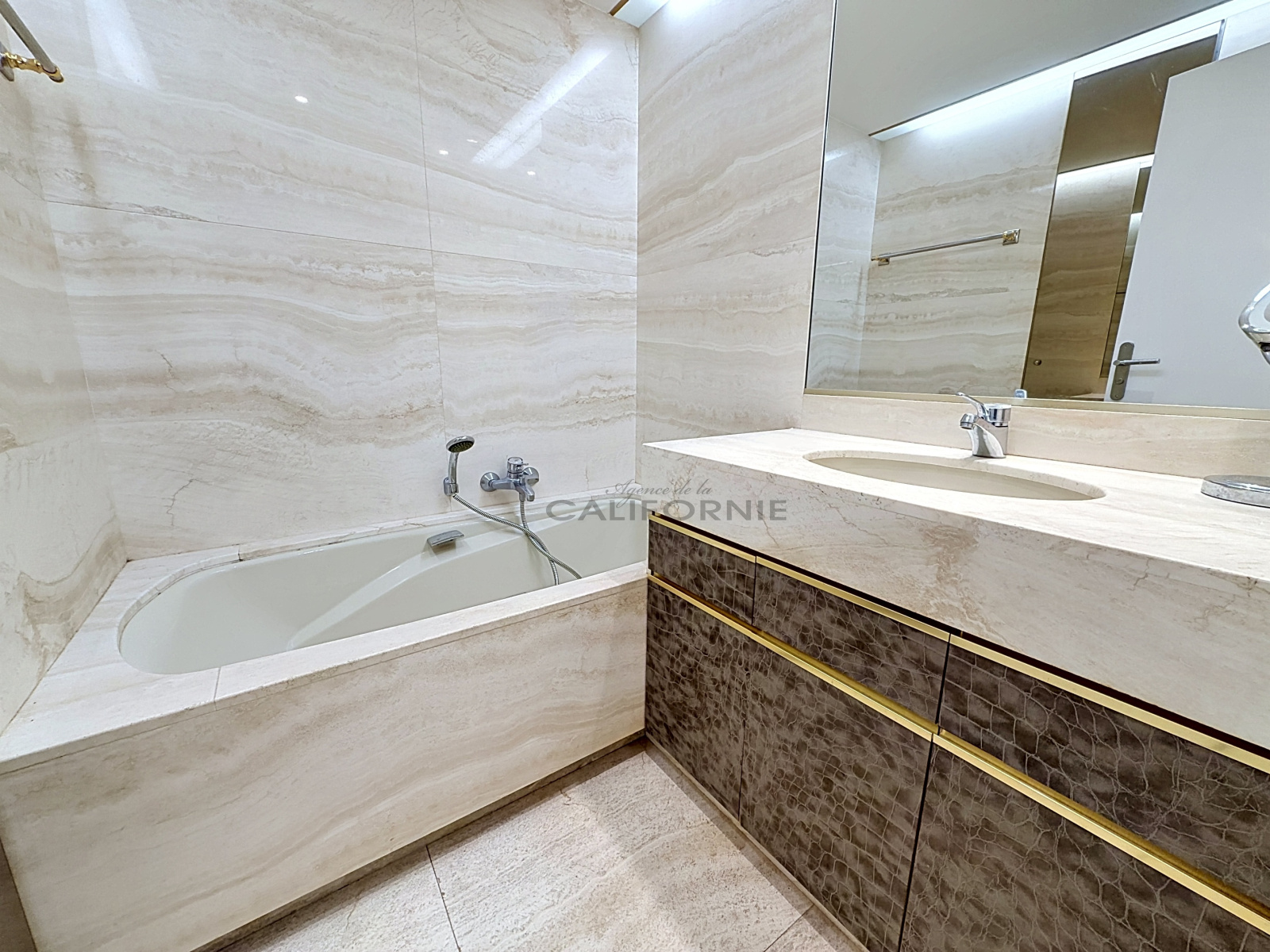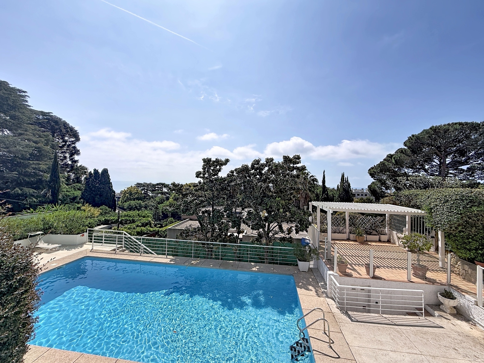 Cannes (06400)Spacieux 3 pièces de 89,37 m² L.C en rez de jardin, profitant d'une terrasse de 40 m² prolongée d'une vue mer. Situé dans une petite résidence de standing, sécurisée au calme. Une Piscine, un parking et une cave complète de ce bien.