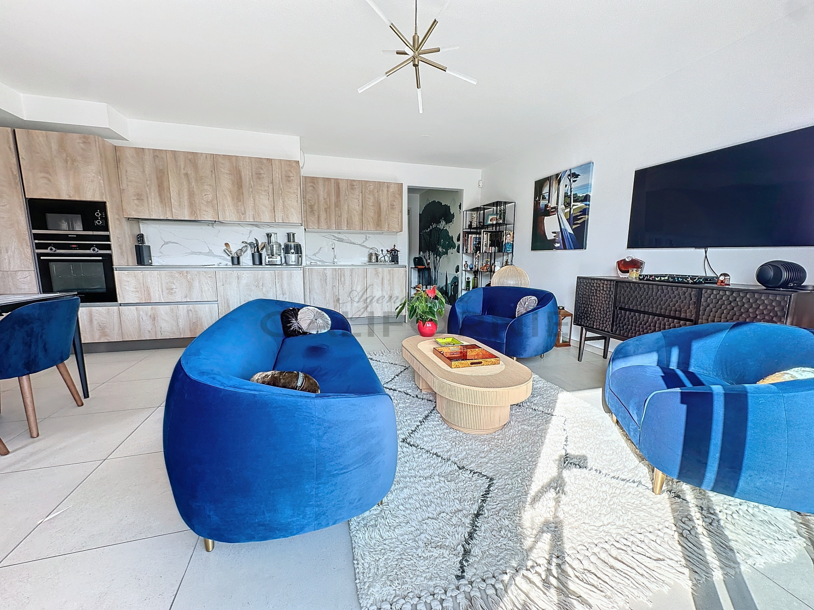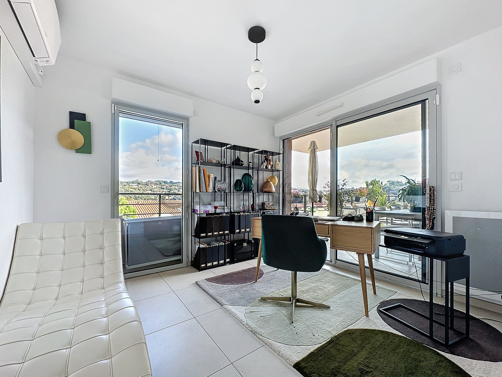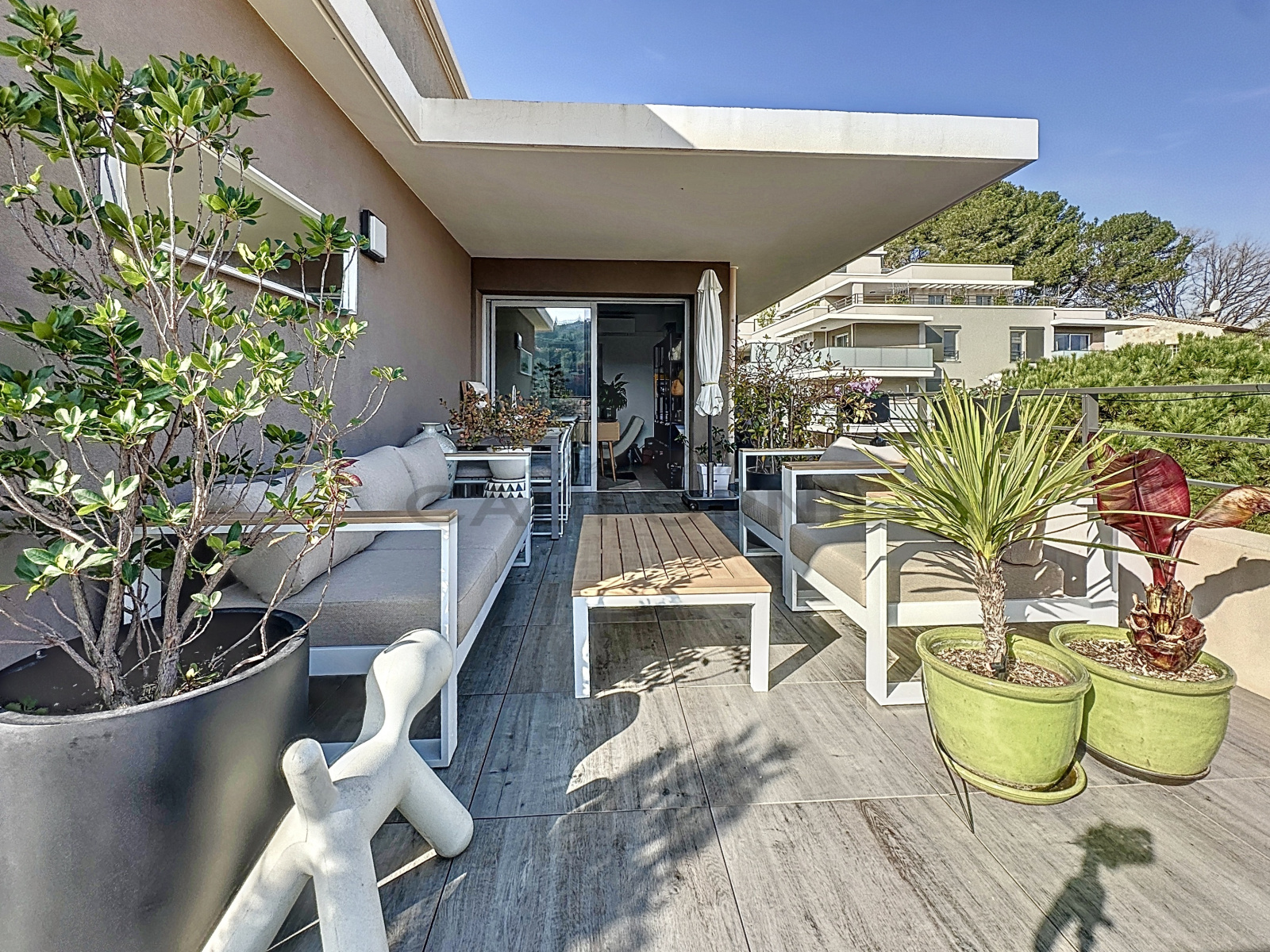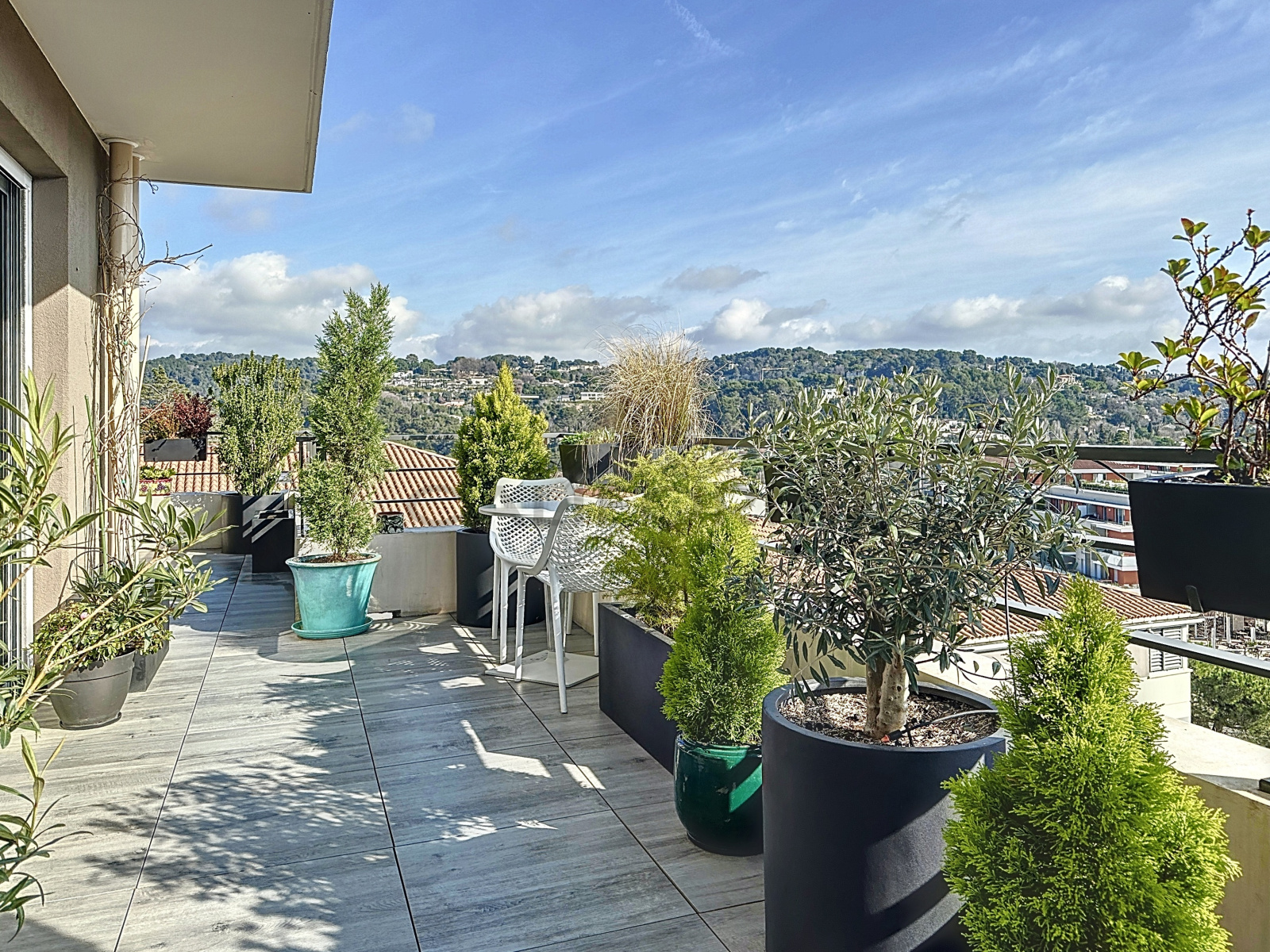 Mougins (06250)Magnifique Villa sur le toit située dans une résidence récente de standing de 2022, au calme absolu. 4 pièces de 89,05 m² L.C. profitant d'une terrasse d'angle de 53,35 m². 2 salles de bains, 3 W.C., caves, box fermé, piscine.